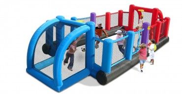 Ищете спортивную альтернативу или дополнение? Тогда наше надувное многофункциональное спортивное поле — идеальный выбор. Оно сочетает в себе футбольное, волейбольное и баскетбольное поля и идеально подходит для юных командных игроков. Боковые сетки предотвращают вылет мяча и делают игру динамичной и быстрой.